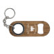 A stylish country rustic themed keychain bottle opener, featuring your name and "Family Cabin", Ranch, Cottage or other text along with its established date and location if desired. This custom, unique design features rustic country style text with a white silhouette of pine trees on a print of wood planks. To see more designs like this, feel free to visit my store here at "Zazzle.com/Rustic_Charm". Thanks.