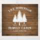 A stylish country rustic themed set of food container bottle and jar labels, featuring your name and "Family Cabin", Ranch, Cottage or other text along with its established date and location if desired. This custom, unique design features rustic country style text with a white silhouette of pine trees on a print of wood planks. To see more designs like this, feel free to visit my store here at "Zazzle.com/Rustic_Charm". Thanks.