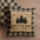 Beautiful, unique, one-of-a-kind rustic, personalised design features a burlap rustic background, pine trees, with your family name, the words,: THE ANDERSONS CABIN IN THE WOODS EST 20XX" in black typography on the front and back. Personalise this pillow by adding your own personal information. Makes a great wedding, anniversary, or housewarming gift. Click "personalise this template" to change the names, fonts, and colours to create a unique one of a kind design. What an elegant accessory for your living room, bedroom, or family room. If you need any help with customisation please email me at ybnormalone @gmail.com. Thanks for stopping by www.zazzle.com/WhisperingPines. ©Karen Hall