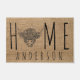 Welcome your guests into your home with this rustic, country, farmhouse design that features a faux burlap background, the word HOME, and your family name. The "O" in the word home is is an illustrated Highland Longhorn cow head. Click "Personalise" to add your own name. If you need help with customisation, please email me at ybnormalone@gmail.com Thanks for stopping by www.zazzle.com/WhisperingPines.