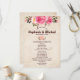 Stylish watercolor pink roses or burlap background floral wedding program fan front side.