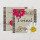 Rustic Country Flowers Wood Twin Baby Shower Invitation