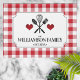 A charming, rustic country kitchen design featuring a classic red gingham plaid pattern, and a personalised label. A great gift idea for birthday's, housewarming or just because!