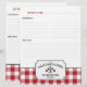 A charming, rustic country kitchen design featuring a classic red gingham plaid pattern, and a personalised label for these wonderful double sided recipe binder inserts.