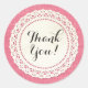 Rustic Country Lace Doily on Hot Pink Thank You Classic Round Sticker
