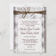 This rustic wedding invitation is perfect for any country western wedding. It features a rustic country printed barn wood background on both sides of the invitation. The invitation has a printed lace embellishment over the top of the wood. The top has a printed twine embellishment. The wood, lace, and twine are just printed designs. It is not actual wood or actual lace or twine.