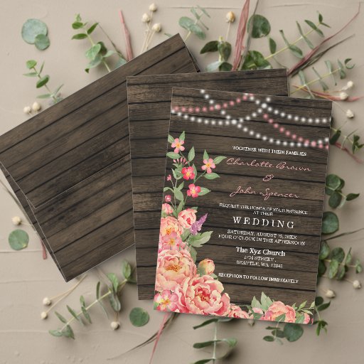 Barn wood Peony Rustic Wedding Invitations SetDesigned by Maria G