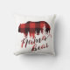 Great addition to the Holiday Party decor or for all year round in the log cabin, this throw pillow matches our other gingham tartan pattern holiday invitations and other accessories. The design features a red and black striped flannel pattern bear with evergreen trees and the words "mama bear" on the front. The back is covered with a matching red and black flannel pattern.