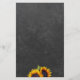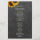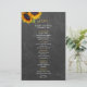 Elegant rustic wedding reception menu featuring a beautiful sunflowers bouquet on dark grey chalkboard background. Ideal for your summer or autumn fall elegant rustic country garden outdoor backyard themed weddings.