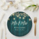 Rustic Country Teal Wood String Lights Wedding Paper Plate
