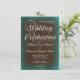 Rustic Country Distressed Turquoise Teal and Brown Vintage Grunge Wedding Invitations with the words "Wedding Celebration" in large fancy script font. The "Wedding Celebration" wording cannot be changed. The colours will look different depending on the paper type you choose to have it printed on. Some paper will look more turquoise and other paper will cause it to look more like aqua or blue green. The distressed background is also on the back of the invitation. Choose from square or rounded corners. These country style wedding announcements are great for barn weddings, country weddings, and anyone looking for an elegant rustic invite. The wedding invitation wording is white.