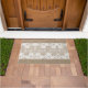 Rustic vintage traditional country farmhouse style doormat on beige faux burlap featuring a beautiful white transparent lace with a floral pattern and borders.