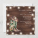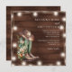 Add rustic charm to your wedding with this country wedding style invitation featuring, cowgirl and cowboy boots, hat, and florals, with glowing string lights hanging from above. For couples who want to create a wedding with rustic charm, that's relaxed, informal, fun, and close to nature. Perfect for a summer or fall rustic wedding. Available in print, as a digital download, or both!