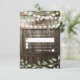 Vineyard greenery rsvp cards featuring a country barn dark oak barrel background, twinkle string lights, botanical green watercolor foliage, your monogram and a modern rsvp template. Find other wood wedding response cards at http://www.zazzle.com/special_stationery