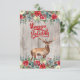 Rustic grey barn wood Happy Holidays bright red brushed typography script and a hand-painted watercolor reindeer making a traditional vintage wonderland Christmas holidays family or business corporate greeting card featuring winter floral borders with red and white peony roses and poinsettia with seasonal foliage, pinecones, and pine boughs +++++++++ Personalise it with your handwriting style text and signature on the reverse! ++++++++++ Suitable for seasonal custom greetings.