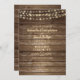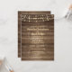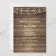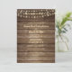 A rustic, country wedding invitation with a weathered wood plank background and yellow glow string lights. All text is editable (delete any sample text to leave blank) and the font style, size, colour and placement can be changed to accommodate your needs by clicking on the "click to customise further" tab. The back of the invitation features the same wood plank background and offers a place to put additional information.