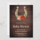Rustic Country Wood Floral Horseshoe Baby Shower Invitation