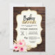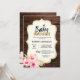 Rustic Country Wood Floral Pink Gold Baby Shower Invitation