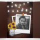 Amaze your guests with this rustic all in one wedding invite featuring beautiful white lace and sunflowers in mason jar on a vintage barn wood background with detachable RSVP card. Simply add your event details on this easy-to-use template and adorn this card with your favourite photo to make it a one-of-a-kind invitation.
