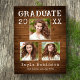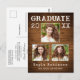 Rustic Country Wood Print 3 Photo Graduation Postcard