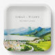 Rustic Countryside Lake Village Landscape Wedding Paper Plate