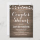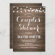 Rustic Couples Shower Invitation Card with Wood Background String Lights. For further customisation, please click the "Customise it" button and use our design tool to modify this template.
