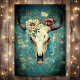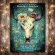 Introducing our Rustic Cow Skull Floral Boho Wedding Invitation, where natural elements blend with refined accents in a striking turquoise with gold accents. Featuring a captivating cow skull adorned with delicate florals, this invitation exudes rustic charm and bohemian elegance.