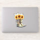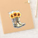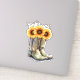 Contour sticker with a cute illustration featuring cowboy boots filled with sunflowers. Original image painted with watercolors.