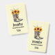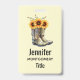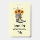 A name tag with a cute illustration featuring cowboy boots filled with sunflowers. Original image painted with watercolors.