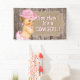 Rustic cowgirl baby shower banner with adorable pink cowgirl on a rustic burlap and distressed wood background. This cute pink cowgirl baby shower banner is easily customised for your event by adding your personalised text in the font style of your choice. This is a printed design with no real burlap, etc.
