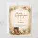 Celebrate your graduate with a warm western-inspired design featuring classic cowgirl boots, delicate wildflowers, and soft prairie grasses framing the layout. The earthy neutral palette of beige, sage, dusty blue, and warm terracotta creates a refined ranch aesthetic that feels both modern and timeless. Perfect for country-loving grads, rodeo girls, or anyone who dreams bigger under open skies. A beautiful blend of rustic charm and elegant botanical detail for a memorable graduation celebration.