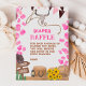 Rustic cowgirl western pink cow baby shower diaper raffle featuring a rustic desert theme, with boho cow skull, cowboy lasso, brown country bunter flags, cowboy hat, rustic wooden wheel, hay stack, sunflowers bouquet, green desert cactus, wooden sign with saloon and horses ( the text can be edited) and wild west brown cow pattern. Saddle up and join us for a baby shower! A little cowgirl is on the way!