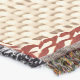 A quality printed throw has its advantages. This is a much finer weave throw than its loopier cousins, and though lighter, it is worth the investment for custom room accessorizing. The back is much prettier than the typical brown, and the fringe on the long sides very vivid, the selvage nicely done. Before photographing, I washed the throw in cold water, delicate, with a thicker woven throw the same size. On tumble dry low, this throw was dry in half the time as the other. This is a very practical quality if you use throws for furniture covers or to wrap up in frequently. The sleekness of the fabric makes it a great layer for accenting or protecting without the feeling of sitting on too much stuff. Perfect for napping or when you feel a light chill coming on. The color printing is beautiful and on this fabric, matched the design and color of my Photoshop image. This is an advantage for blending room fabrics and colors. The fringe on the short sides prints the colors from the design image and therefore varies from the side fringe. I streaked a white fractal line through the plaid pattern to give the illusion of weaving. This printed as crisp as an illusory thread, and put some white in the short side fringe, showing another advantage of print vs loomed- for artistic purposes, line lines, detail, and color integrity can be planned and preserved. My loomed throws have color limitations and more of a needlepoint texture. Print throws reproduce an exact image. The throw felt a little stiff straight out of the package, but this went away in the first delicate wash. Of course I searched the wash water for ink or bleeding and there was none.