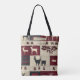 This seamless patchwork pattern tote bag features stylised deer and abstract motifs in a grid of alternating red and off-white squares. With its coarse woven texture and cross-stitch aesthetic, it evokes the charm of handmade holiday crafts. Perfect for rustic farmhouse décor, folk-inspired Christmas style, vintage needlework lovers, or cosy winter holiday themes. A festive design that blends tradition, texture, and timeless charm.