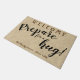 Welcome your guests with this fun script typography rustic door mat design personalised with a name and year established plus "Prepare for a hug" message. Fill in the text field with a family name, remove the name or click customise to select a font style, size, and colour you prefer.