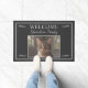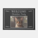 Modern rustic dark grey doormat with photo template, family name and Welcome script.