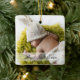 Rustic Custom Photo Family of 3 1st Xmas Newborn Ceramic Ornament