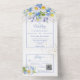 Rustic Daisies & Blue Floral Bouquet QR Code All In One Invitation