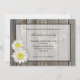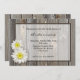 Rustic bridal shower invitation with white daisies on a weathered barn wood background.