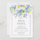 So fresh and lovely, this bridal shower invitation is a soft blue, lavender, and yellow bouquet of the daisies, violets, and lavender which are complimented with soft greenery. Simple, yet elegant, perfect for a spring or summer event. Created by Simply Farmhouse Press.