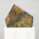 This is an ornate, decorative pattern in shades of gold, turquoise, and rust. The design features intricate, symmetrical damask or arabesque motifs that resemble stylised acanthus leaves, scrolls, and floral elements arranged in vertical columns. The patterns have a distressed, weathered appearance with faded and worn areas, revealing turquoise and rust underneath the gold top layer. This aged patina effect gives the design an antique or vintage feel.