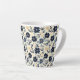 Rustic Dark Blue Beige Flower Folk Art Print Latte Mug