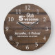 Rustic Dark Brown Wood 5th Wedding Anniversary Large Clock