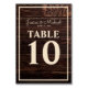 Rustic dark brown wood and cream wedding reception table number. Contact us for help with customisation or matching products.