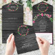 Rustic Dark Grey Wood Pink Floral Country Wed RSVP All In One Invitation