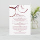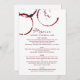 Chic rustic modern red wine glass stain menu card design includes custom text for the event date, menu, and wine pairing information.