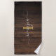 Rustic Dark Wood Monogram Script Name Initial Beach Towel