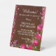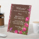 Rustic Dark Wood Pink Floral Wedding Safety Pedestal Sign