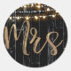 Rustic Dark Wood & String Lights Gold Bride MRS. Classic Round Sticker