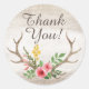 Rustic Deer Antler Bohemian Floral Wood Thank You Classic Round Sticker